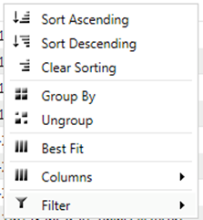 Right click on a column in the header menu of the report and a context menu will pop up as seen on the screenshot below.