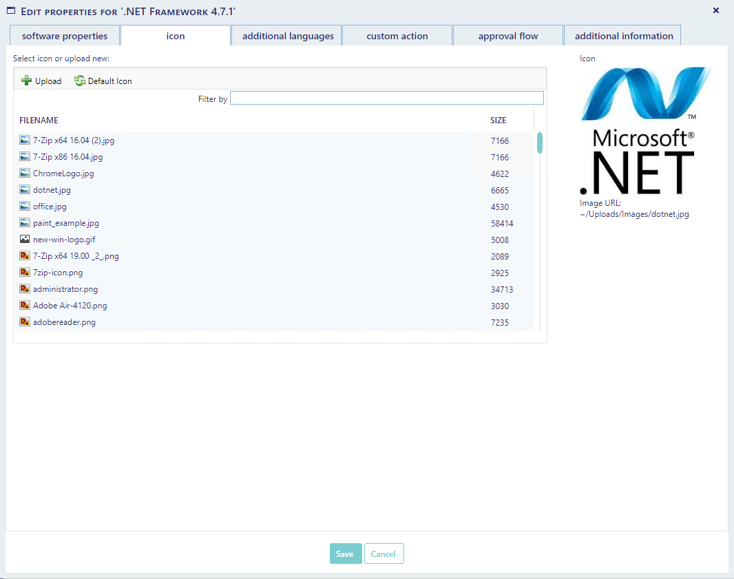 The "Default Icon" button will set the shop default image as the icon for the package.