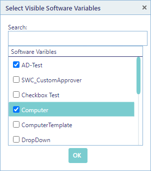 The checkbox “Show Software Variables” must be checked for the variables to show. Click on the “Select visible variables” button to select the variables needed for this package.