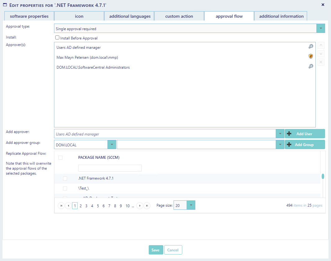 You can also choose to copy the approval flow to other packages, by selecting one or more packages in the list below.