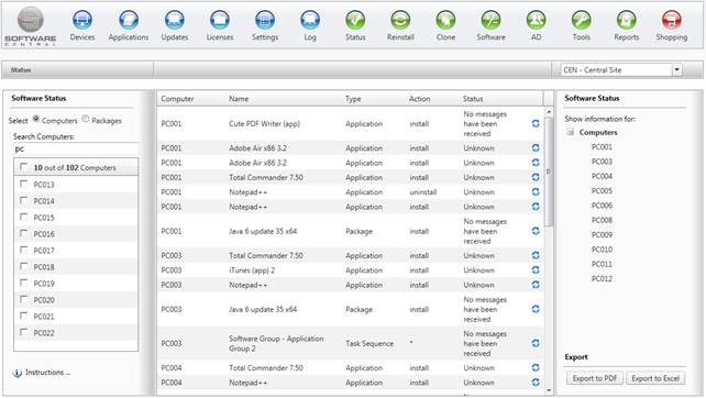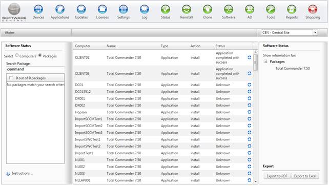 It is possible to select both computers and packages at the same time. So if you select 10 computers and 1 package, the deployment status on the 10 selected computers for the package will be displayed: