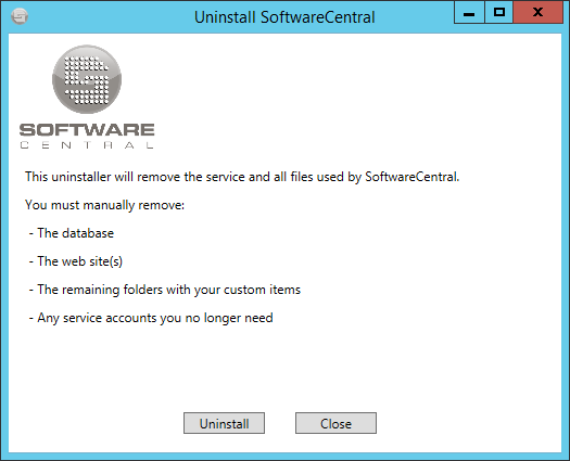 If you are not moving the SoftwareCentral installation you must also remove the SoftwareCentral database and any service accounts you no longer need.