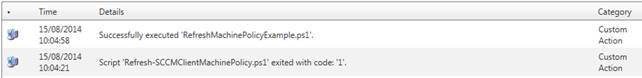 From the log you can see that the script has been executed. If the execution fails, the scripts return code are written in the SoftwareCentral log.