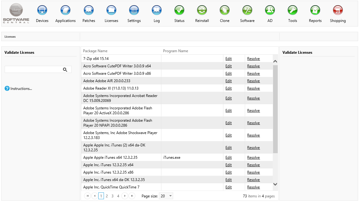 | Interfaces > Licenses > Validate Licenses |
